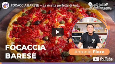 FOCACCIA BARESE - LA RICETTA PERFETTA DI ANTONIO FIORE - "Immaginatevi per le vie di Bari, a passeggiare con in mano un pezzo di focaccia appena sfornata, il fazzoletto alla mano perché vi cadrà sicuramente qualche pomodorino e gli occhi chiusi per la sua bontà! Ora aprite gli occhi: non siamo in Puglia, ma con i consigli preziosi di Antonio Fiore, potremo farla direttamente a casa nostra e sarà strepitosa! Correte ai fornelli a prepararla voi stessi!". Video di Giallo Zafferano.